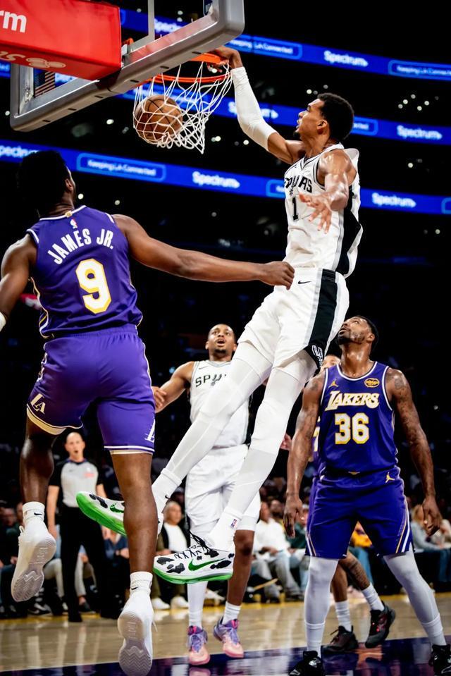 与打太阳那场比赛不同,马刺打湖人投出了39.4%的三分命中率,尤其是巴恩斯在底角回应了大量的空位三分。所以在文班发挥不佳的情况下,马刺依然和湖人打到了最后时刻。但值得一提是,湖人成功把文班在最后时刻给搞下去了。